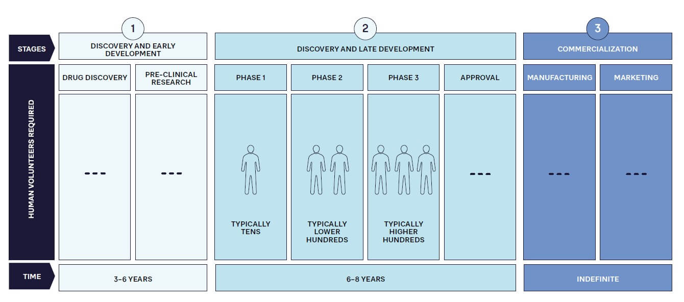 The drug development process first focuses on patients when companies identify an unmet need or one that can be met more successfully through new approaches in order to create a target product profile (TPP). While this may appear simple, multiple factors are involved. For example, the need must be commercially viable, whether in terms of the size of the patient population or access to funding for drugs. This calculation has meant developing drugs for common diseases or new antibiotics in poorer, developing countries has been curtailed by lack of a commercial market. However, new approaches, such as funding from governments, charities, and NGOs, potentially change this equation, as shown by the recent introduction of GSK’s RTS,S vaccine against malaria, which is funded by Gavi (whose members include pharmaceutical companies); the Vaccine Alliance; the Global Fund to Fight AIDS, Tuberculosis and Malaria; and Unitaid.